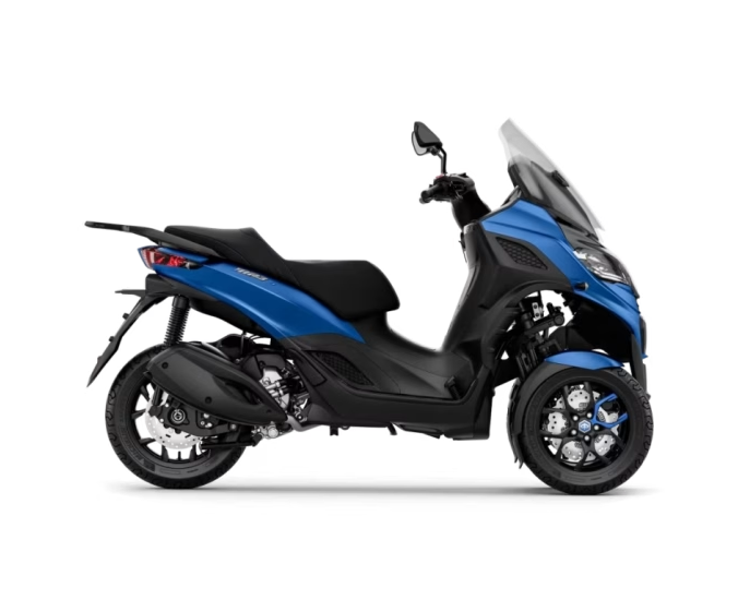 Avec sa face avant aux formes modernes et ses coloris qui mettent en valeur son design épuré inspiré de l’univers automobile, le Piaggio MP3 310 Sport fait tourner les têtes partout où il passe. Des détails tels que les surpiqûres bleues et les décalcomanies sur les jantes avant noires font également sensation, tandis qu’un mélange de finitions noires mates et brillantes ainsi que le plancher avec ses inserts en aluminium complètent l’ambiance sportive. Accessible avec un permis auto, cette fusion parfaite d’élégance et de dynamisme est destinée à ceux qui recherchent le style et la performance dans un véhicule déjà unique au monde.
