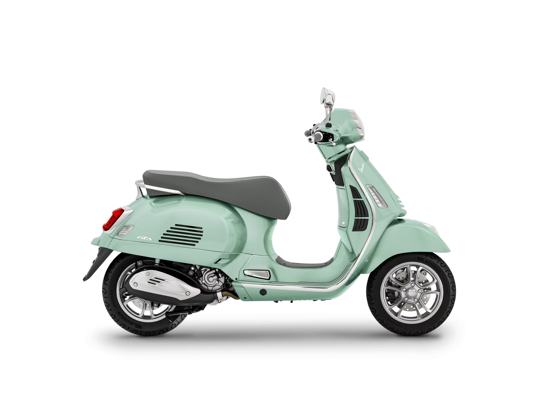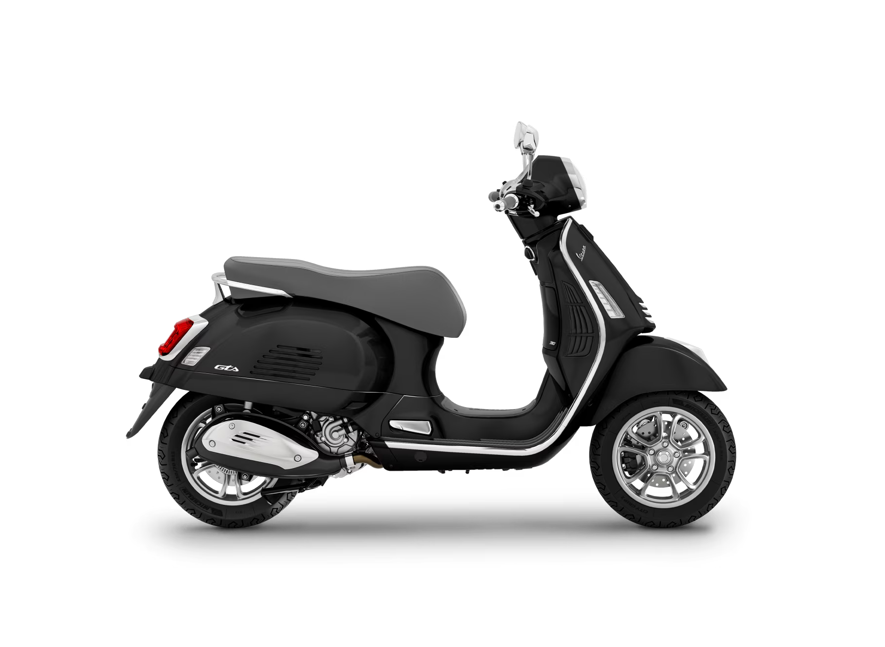 Chaque détail de la Vespa Gts a fait l’objet d’une attention méticuleuse. Les teintes métalliques présentent une finition brillante, la selle et la finition de l’intérieur du tablier sont assorties, les éléments chromés ajoutent une touche d’élégance supplémentaire et, bien sûr, la célèbre « cravate » continue de contribuer au statut d’icône intemporelle de Vespa.