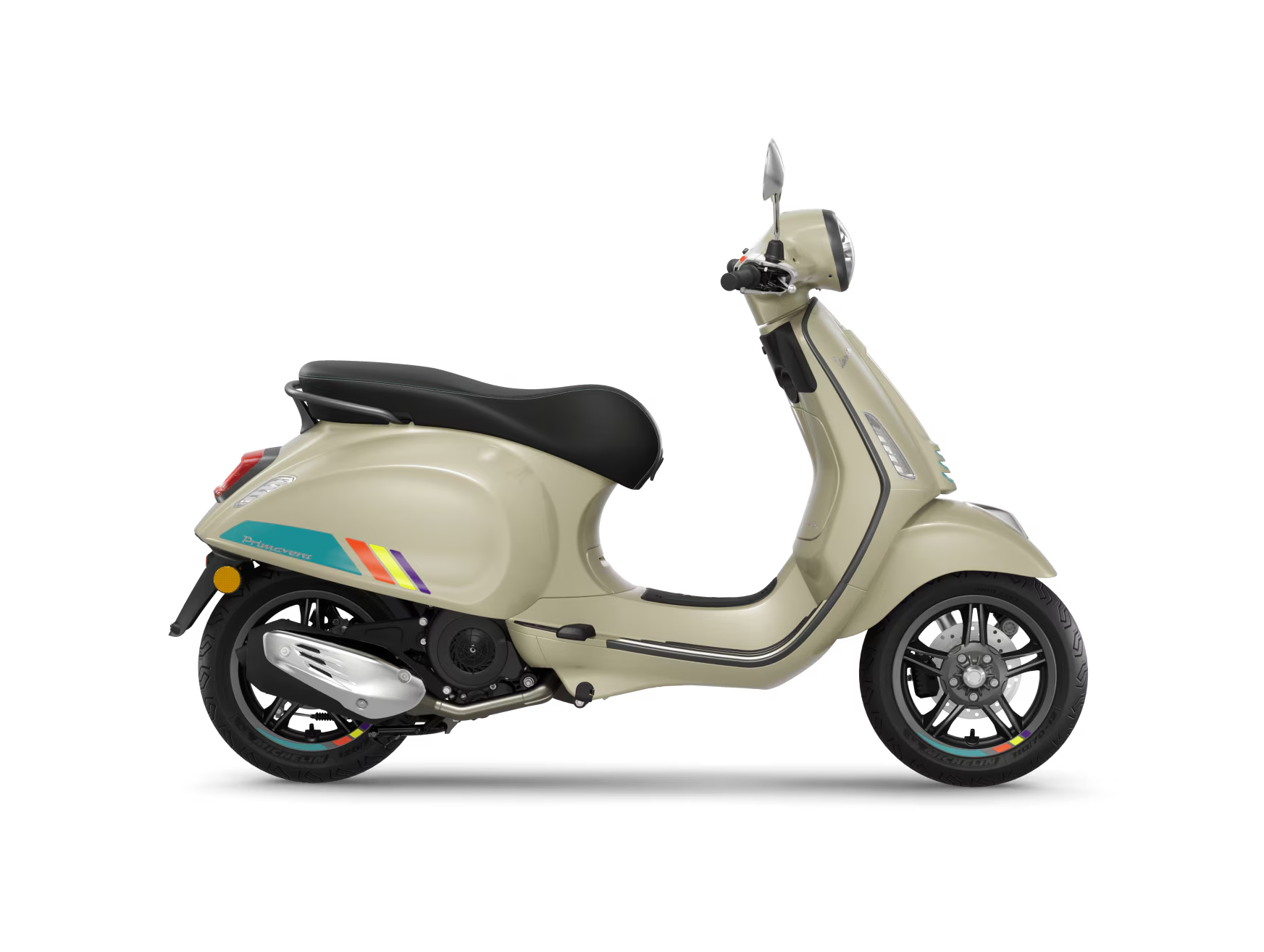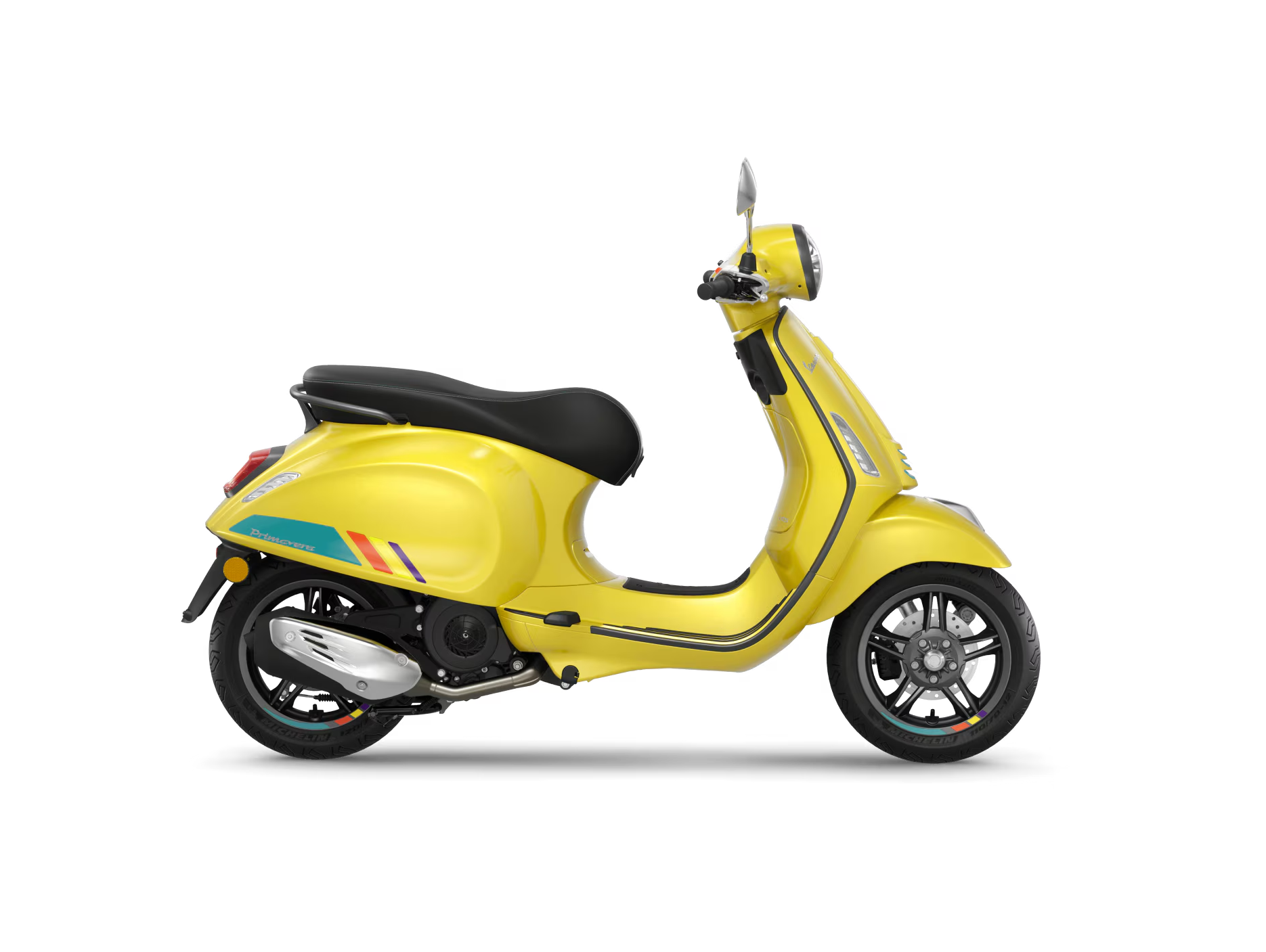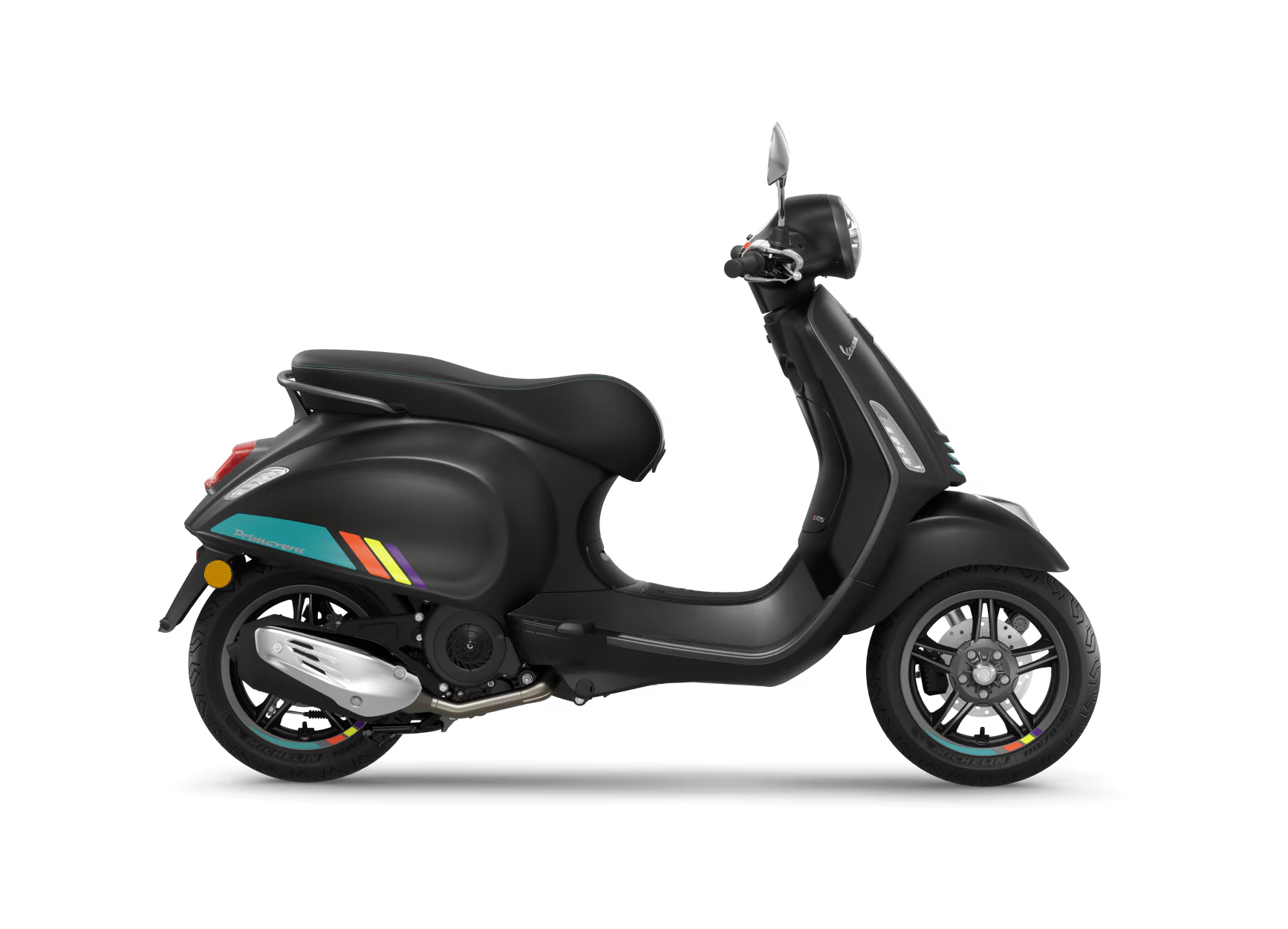 La Vespa Primavera S offre l’élégance pure d’une icône italienne, avec une touche contemporaine et sportive. Les finitions chromés et les contours gris graphite mettent en valeurs ses formes vives qui rendent ce scooter impossible à manquer dans la foule.