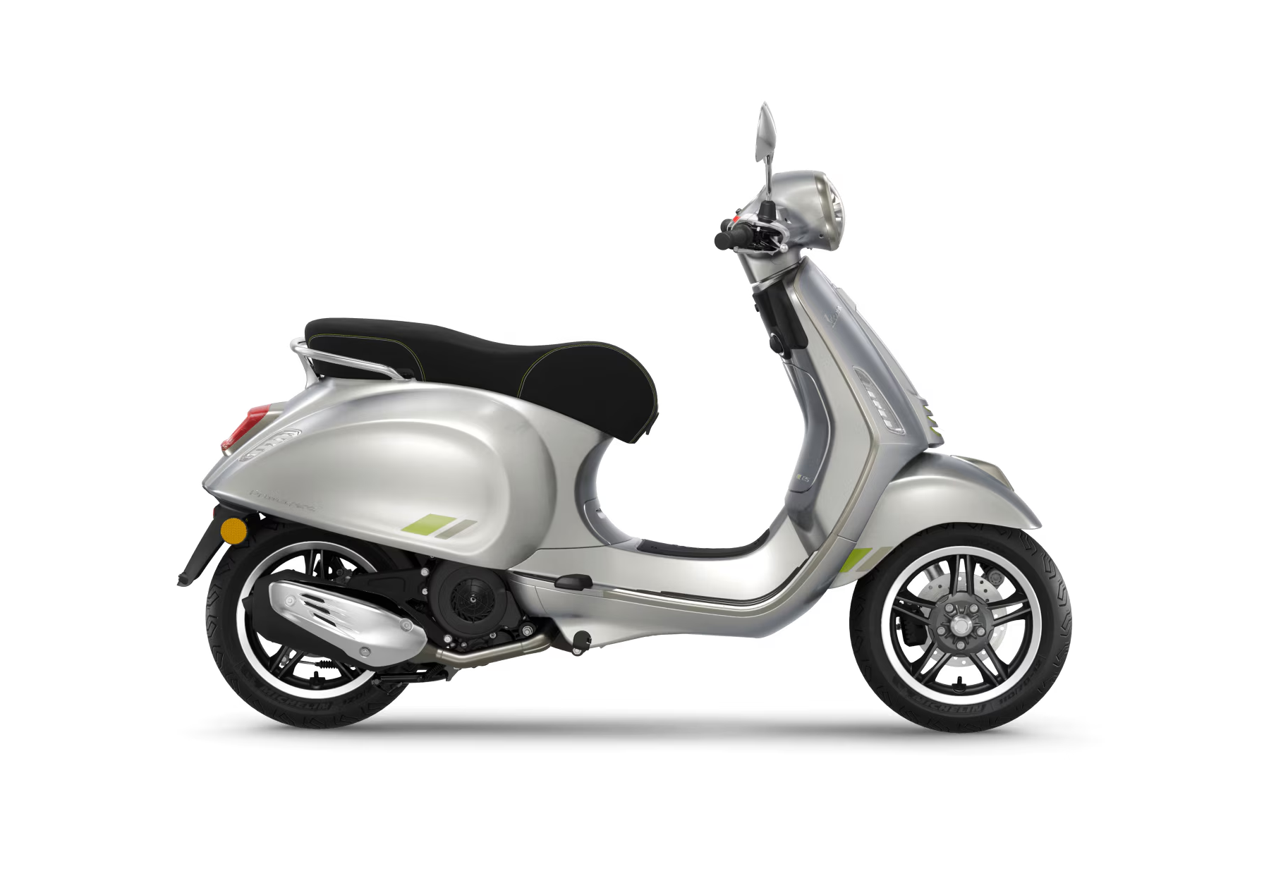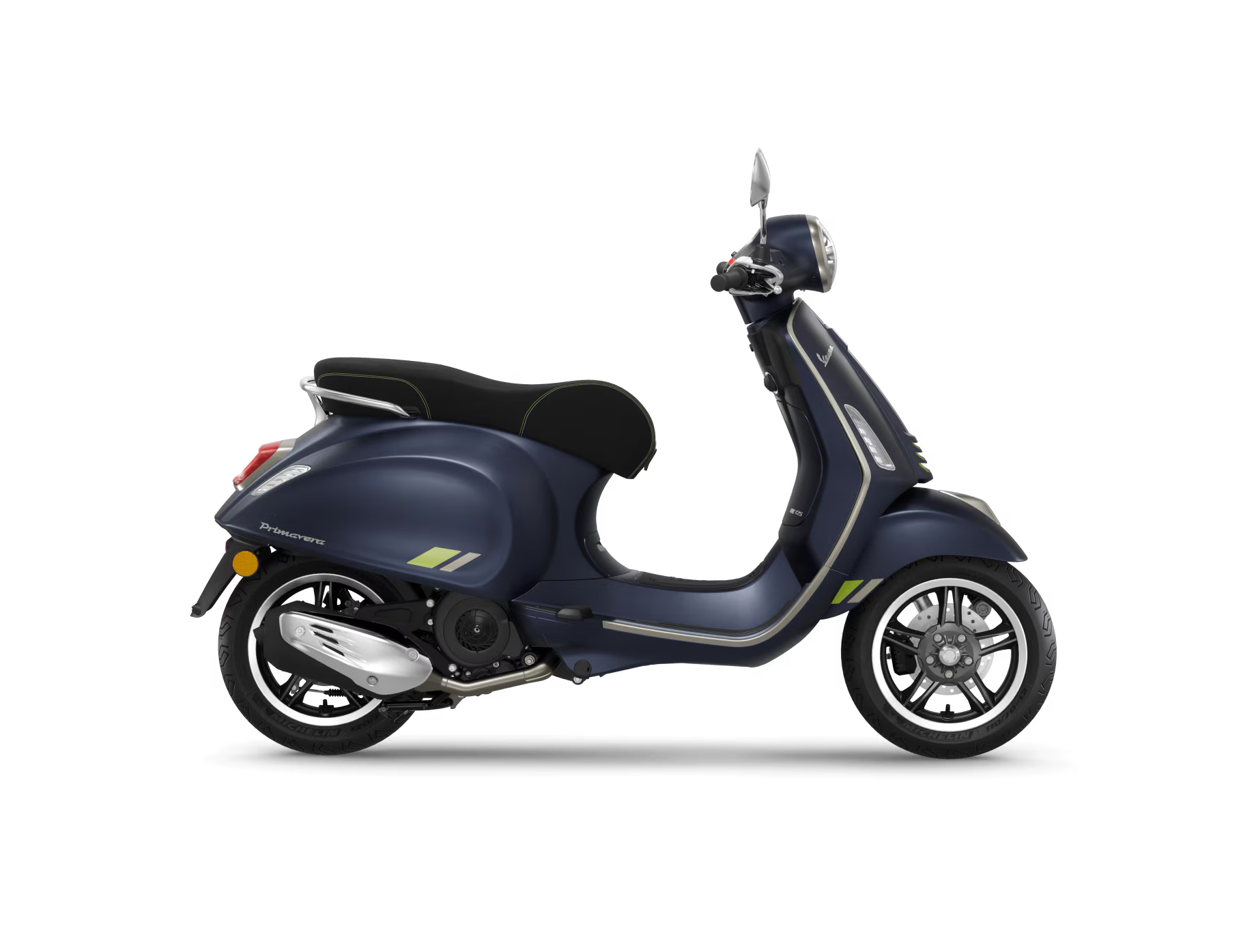 La Vespa Primavera Tech ajoute de l’innovation technologique à l’âme authentique de la Vespa Primavera pour créer un style moderne et exclusif. Les finitions chromées et les couleurs irisées se combinent à la perfection dans un jeu de lumière saisissant, tandis que les détails contrastés en vert fluo apportent une touche high-tech et dynamique.