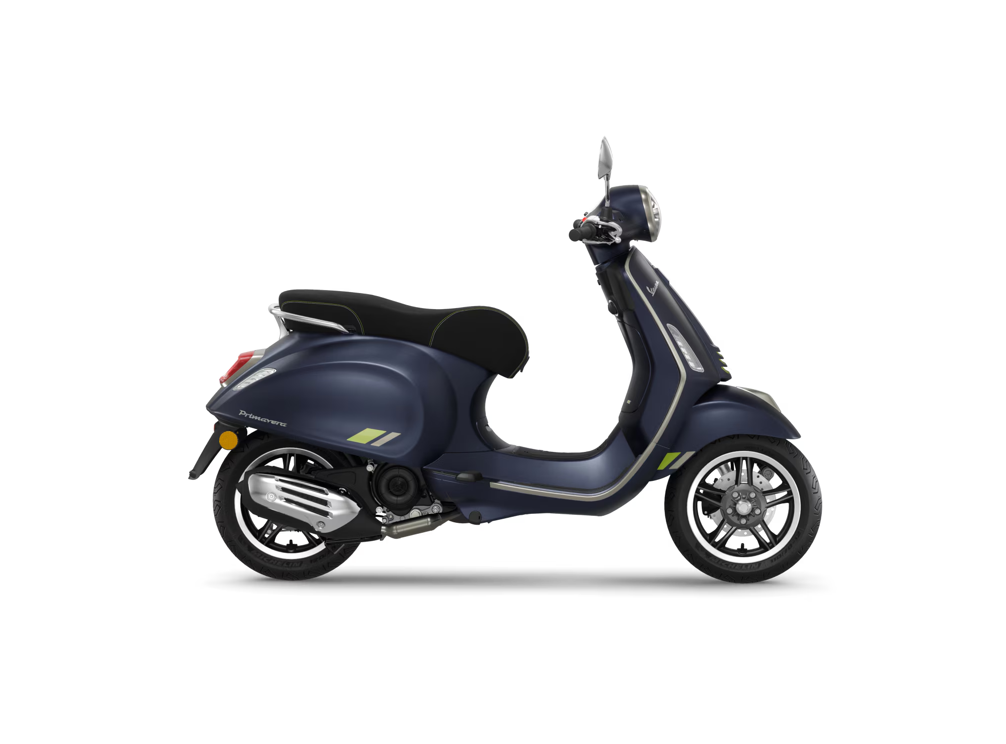 La Vespa Primavera Tech ajoute de l’innovation technologique à l’âme authentique de la Vespa Primavera pour créer un style moderne et exclusif. Les finitions chromées et les couleurs irisées se combinent à la perfection dans un jeu de lumière saisissant, tandis que les détails contrastés en vert fluo apportent une touche high-tech et dynamique.